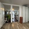 Ausgebautes, gedämmtes Studio mit zwei gegenüberliegenden Fenstern