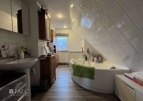 Bäder mit Komfort: Gäste-WC im Erdgeschoss, großzügiges Hauptbadezimmer mit Eckbadewanne,