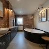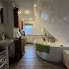 Stilvolles Bad mit Eckbadewanne, Doppelwaschbecken und WC