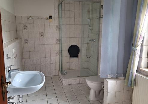 Die Wohnfläche (ohne Kellerfläche gerechnet) von ca. 100 m² (plus ca. 30 m² nicht ausgebautem Dachboden im 2. OG ) verteilt sich über zwei Stockwerke. Im EG befinden sich Küche, Wohnzimmer und ein großzügiges Tageslicht-Badezimmer mit Dusche und WC sowie ein zusätzliches Gäste-WC mit Fenster. Im OG befinden sich 3 Zimmer zur beliebigen Nutzung und ein WC mit Waschgelegenheit und Fenster. Großer Vorteil: Das Haus besitzt keine unschöne Holzverkleidung an der Decke oder an der Wand. Nur der Keller ist mit Holz verkleidet. Die Elektroleitungen wurden schon durch dreiadriges Kabel ersetzt bzw. erneuert. Auch die Wasserleitungen und Abwasserrohre wurden erneuert. Das Haus besitzt auch schon Flächenheizkörper.