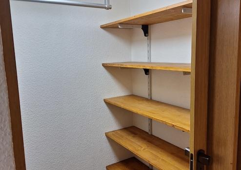 Vom EG bis OG führt eine Holztreppe. Vom OG bis DG führt eine ausziehbare Leiter.