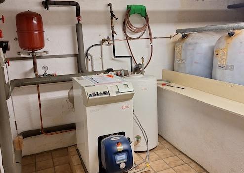 Die Heizung: ELCO Niedertemperaturkessel und MAN Brenner wurden 2007/2008 erneuert. Im gesamten Haus wurden schon Flächenheizkörper verbaut.