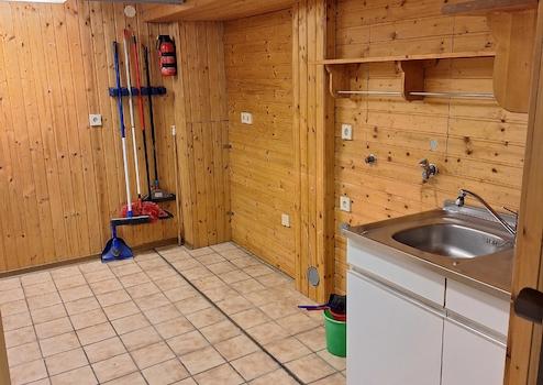 Ein Brunnen (günstig für die Gartenbewässerung) befindet sich in einem beheizbaren Nebengebäude.