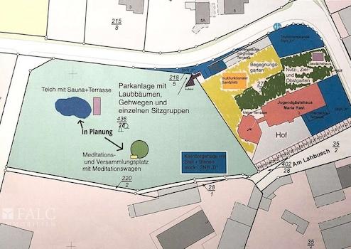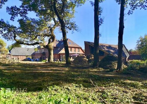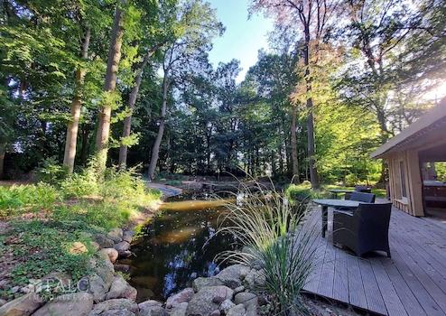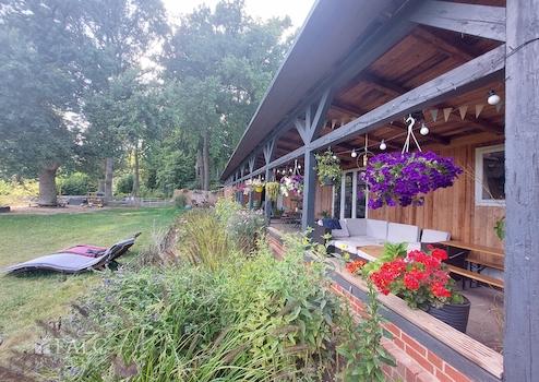 Das 13.000 m² große Grundstück mit Parkanlage und altem Baumbestand bietet viel Platz für den riesigen Garten, zum Entspannen in lauschigen Ecken oder unter Bäumen oder für spannende Abende am Lagerfeuer.