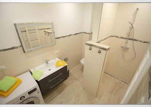 • Waschtrockner im Bad (Haushaltsgerät zum automatischen Waschen und Trocknen von Wäsche)