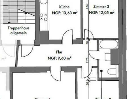 Der Verkaufsgegenstand verfügt über eine Wohnfläche von ca. 77,57 m², bestehend aus 3 Zimmern, Küche, Bad, Balkon und Flur. Zusätzlichen Stauraum bietet ein Abstellraum innerhalb der Wohneinheit. Zugehörig ist ebenfalls ein eigener Kellerraum, im Untergeschoss des Gebäudes.