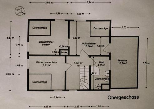 Die ca. 111 m2 Wohnfläche teilen sich auf EG 63 m2 und OG 48 m2 auf. Das 31 m2 große Wohnzimmer im EG (auf den Bildern wirkt alles kleiner!) kann bei Bedarf in zwei Zimmer aufgeteilt werden. Im OG im Zimmer mit Zugang zur Terrasse ist Zu- und Abwasseranschluss vorhanden, sodass das Haus bei Bedarf auch als zwei Wohneinheiten genutzt werden kann.