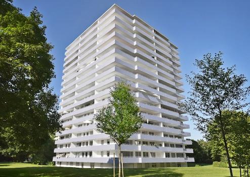 Die angebotene 1-Zimmer-Wohnung befindet sich am rechten Isarufer des Herzogparks, unmittelbar an der Grenze zum Stadtteil Oberföhring. Das 1969 errichtete Gebäude zählt zu den gepflegtesten Hochhäusern Münchens. Das Appartement liegt im 9. Obergeschoss und eröffnet einen beeindruckenden Weitblick bis zu den Alpen.
