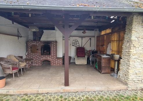 An den Innenhof grenzen eine Terrasse, zwei Garagen und ein kleines Nebengelass mit Grill-Kamin und weiterem Abstellraum.