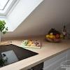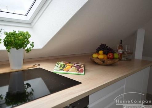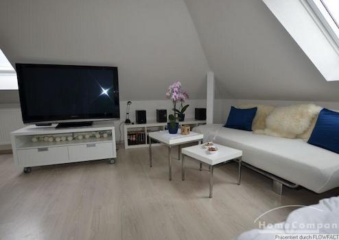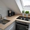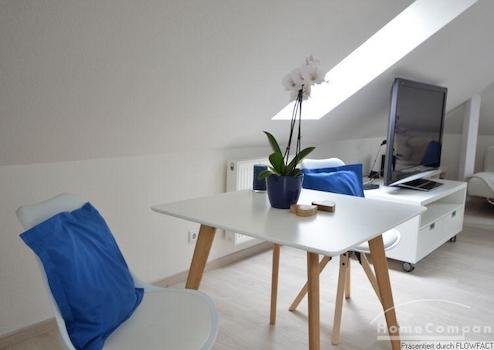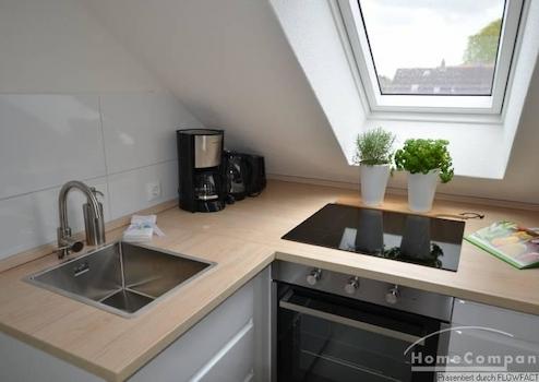 Diese Appartment befindet sich in der 1. Etage eines Einfamilienhauses. Nach umfänglichen Umbau ist daraus ein großzügiges Appartment enstanden welches aufgrund von Licht und Dachschrägen und geschickte Aufteilung einen sehr angenehmen Charme versprüht. Eine clevere Anordnung der Möbel schafft drei optisch separate Bereiche. Eine moderne Küchenzeile mit einem Essbereich auf der einen Seite und der Wohn-und Schlabereich auf der anderen Seite. Ein großes Doppelbett sorgt für guten Schlaf.Das neu gestaltete Badezimmer ist mit einer Dusche ausgestattet. Eine Waschmaschine zur Mitbenutzung steht zur Verfügung. Handtücher und Bettwäsche werden gestellt. Diese Appartment ist perfekt für eine Person.