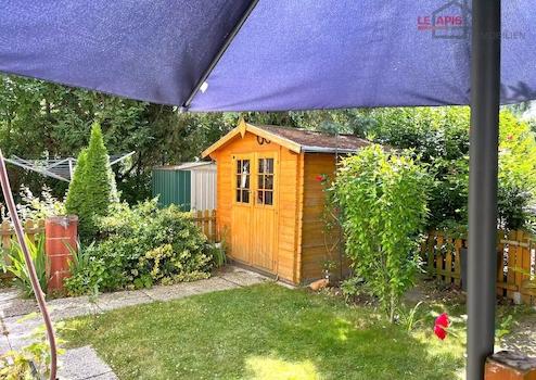 - Terrasse u. begrünter Gartenanteil inkl. Holzgerätehaus