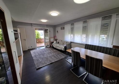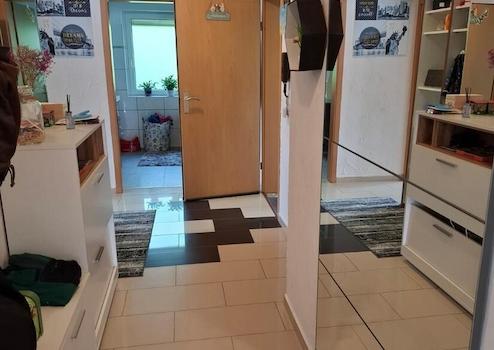 * in eine Terrassen-Wohnung, zwei Zimmer, Küche und Bad, ca. 58 qm groß,