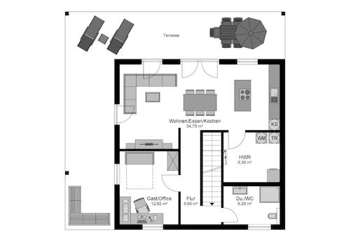 Die Stadtvilla überzeugt durch ihre hochwertige Ausstattung und die Verwendung modernster Bau- und Haustechnik. Mit dem Energietyp KFW40 Standard profitieren Sie von einer energieeffizienten Bauweise, die nicht nur ökologisch sinnvoll ist, sondern auch Ihre Nebenkosten senkt. Die Ausbaustufe "FastFertigPlus" beinhaltet eine Sanitär-Grundausstattung, sodass Sie sich um die haustechnischen Gewerke wie Heizung, Lüftung, Sanitär und Estrich keine Sorgen machen müssen. Die Flexibilität in der Gestaltung Ihres Hauses, sei es durch verschiedene Dachformen oder Farboptionen, macht Ihr Zuhause einzigartig und individuell.