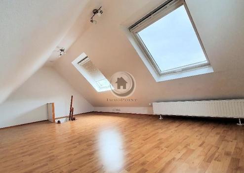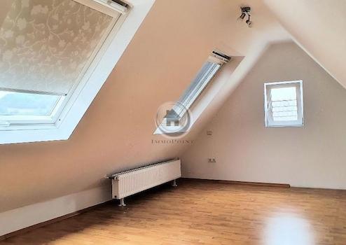 Das Schlaf- bzw. Kinderzimmer befindet sich neben dem Wohnzimmer. Ein weiteres Schlaf- bzw. Kinderzimmer im Spitzboden erreichen Sie über die Treppe im Flur. Weil auch dieser Raum lichtdurchflutet ist, kann er auch sehr gut als Atelier oder Arbeitszimmer genutzt werden.