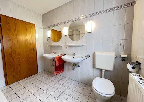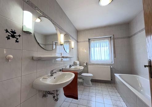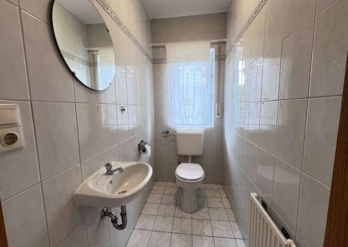 Das Hauptbad ist mit einer Badewanne ausgestattet und sorgt für entspannende Wohlfühlmomente. Ein separates Gäste-WC ergänzt den Komfort und macht das Haus auch für Familien- oder Freundesbesuch praktisch.