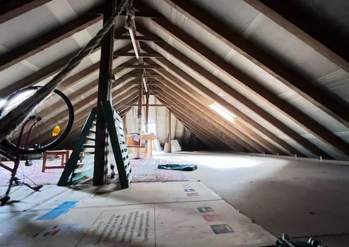 Der über die gesamte Hausfläche reichende Dachboden bietet ca. 135 m² Grundfläche und eröffnet die Möglichkeit, weiteren Wohn- oder Hobbyraum zu schaffen. Hier können Sie Ihre Ideen verwirklichen.