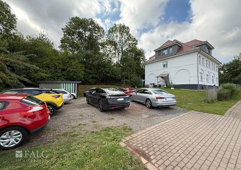 Das Anwesen steht auf einem weitläufigen Grundstück von rund 3.684 m², das neben einem großzügigen Garten auch zahlreiche Stellplätze für die Bewohner bietet. Damit verbindet die Immobilie den Charme und die Großzügigkeit eines historischen Wohnhauses mit zeitgemäßer Ausstattung und attraktiven Nutzungsmöglichkeiten.