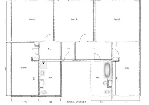 Die Wohnung entstand durch das Zusammenlegen zweier Wohneinheiten. Sie verfügt über 4 Zimmer, die Ihnen vielfältige Nutzungsmöglichkeiten bieten. Zudem stehen Ihnen 2 Badezimmer, jeweils mit Fenster, zur Verfügung. Eins ist mit einer Dusche, das andere mit einer Badewanne ausgestattet.