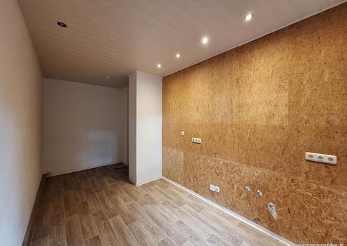 Die vorhandene Einbauküche besteht aus Ober- und Unterschränken, Spüle und Mikrowelle sowie Dunstabzugshaube und bietet Platz für weitere eigene Elektrogeräte.
