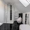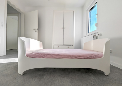 Besonderheiten sind die smarte Haussteuerung mit App-Bedienung für Heizung, Licht und Rollläden sowie zahlreiche Netzwerkanschlüsse. Das Bad punktet mit Tageslicht, Regendusche, hochwertiger HÜPPE-Duschkabine und flexiblen Möglichkeiten für Einzel- oder Doppelwaschbecken.