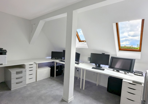 - vielseitig nutzbare Dachräume (Showroom, Hobby, Stauraum)