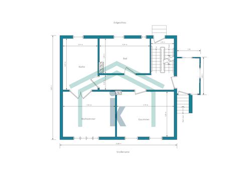 Das Erdgeschoss welches Sie vom Hintereingang über 4 Stufen erreichen, teilt sich in 2 Zimmer, der Küche, dem geräumigem Bad, der Veranda und dem Flur auf.