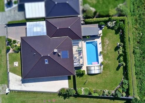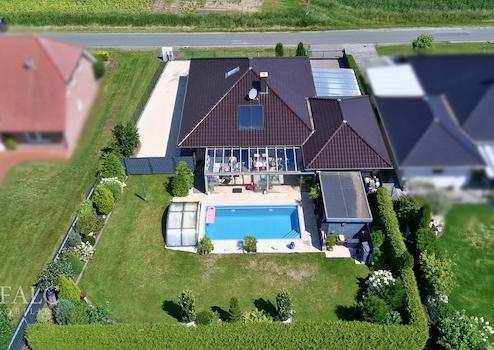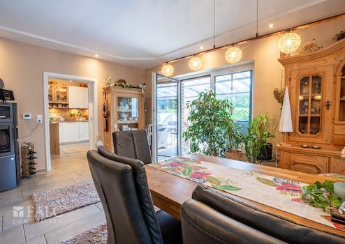 Das 2017 erbaute Haus begeistert mit einer gehobenen Ausstattung: edle Fliesenböden, eine moderne Fußbodenheizung mit Gasbetrieb und ein lichtdurchfluteter Wintergarten, der das ganze Jahr über ein besonderes Wohngefühl schafft. Von hier aus haben Sie direkten Zugang zum liebevoll angelegten Garten mit Pool – ein echtes Highlight für entspannte Stunden im Freien.