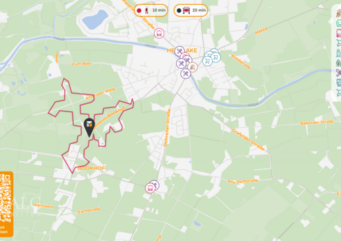 Die Immobilie befindet sich in der charmanten Gemeinde Herzlake im Landkreis Emsland in Niedersachsen. Hier genießen Sie die Vorzüge eines ruhigen, ländlichen Lebensstils, ohne auf eine gute Infrastruktur verzichten zu müssen. Die nächstgelegene größere Stadt ist Lingen (Ems), die etwa 16 Kilometer entfernt liegt und mit dem Auto in rund 20 Minuten erreichbar ist. Der nächste Hauptbahnhof befindet sich ebenfalls in Lingen, sodass Sie von dort aus bequem überregionale Zugverbindungen nutzen können. Der nächstgelegene Flughafen ist in etwa 45 Minuten zu erreichen, was Ihnen eine gute Anbindung an nationale und internationale Reiseziele ermöglicht.