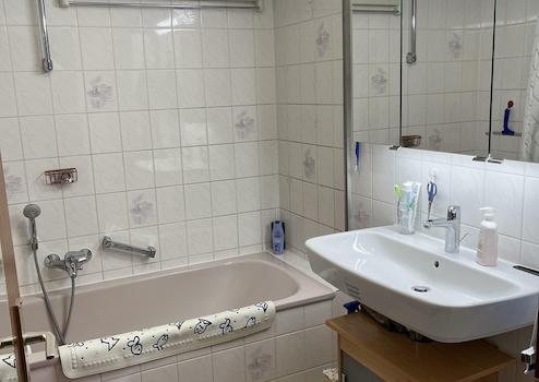 Die Wohnung besteht aus 3 Zimmern, Küche, Bad, extra WC (renoviert), großem Balkon, Abstellraum; inbegriffen ein Kellerabteil und ein TG-Stellplatz. Bad und Fliesen sowie Tapeten können bei Bedarf noch ganz nach eigenem Geschmack verändert oder erneuert werden.