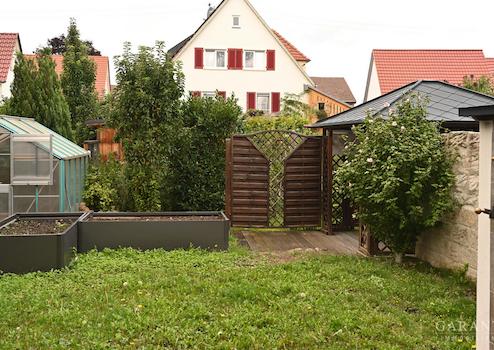 Der praktisch angelegte Garten ist gepflegt und bietet vielfältige Möglichkeiten für Freizeit und zum Gärtnern. Dort steht auch ein herrlicher gemauerter Pizzaofen. (Der kann sicher auch im Winter tolle Pizzen zaubert).