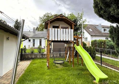 Insgesamt verteilt sich das alles auf ca. 160 qm Wohnfläche. Dazu kommt eine wirklich schöne, recht große Terrasse und, ganz wichtig und wie in den Bildern zu erkennen, das kleine Haus für die Kids. Auf ein paar weitere Highlights möchten wir verweisen: