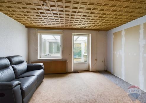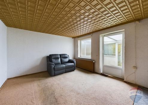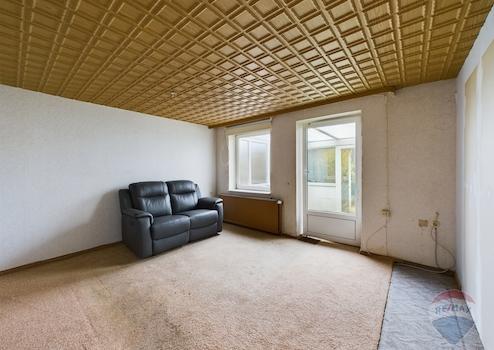 Von der Küche geht links das Wohnzimmer mit Zugang zum Wintergarten ab.