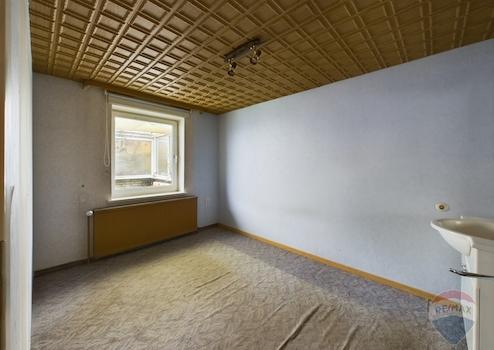 Eine Leichtbauwand trennt das Wohnzimmer und ein separates, 10m² großes, Schlafzimmer.