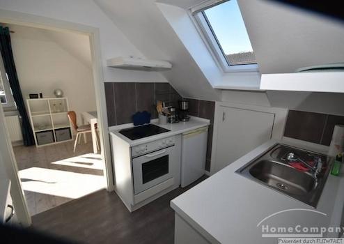 Diese Wohnung liegt in der oberen Etage eines Einfamilienhauses. Vom gemütlichen Wohnzimmer hat man einen wunderbaren Blick auf den Garten des Hauses. Das Mobilar ist neu. Die Küche hat einen direkten Zugang zum Essbereich im Wohnzimmer, Das Vollbad hat ein Fenster. Die Wohnung ist perfekt für 1 Person.
