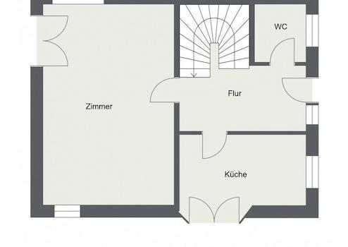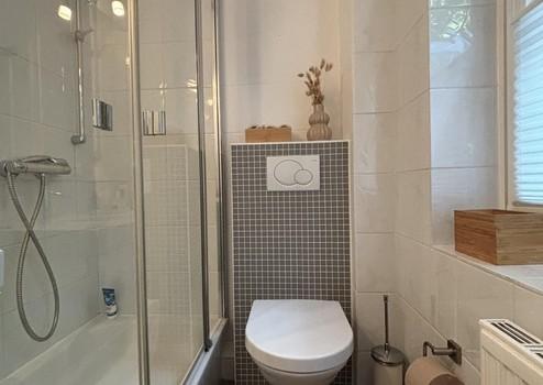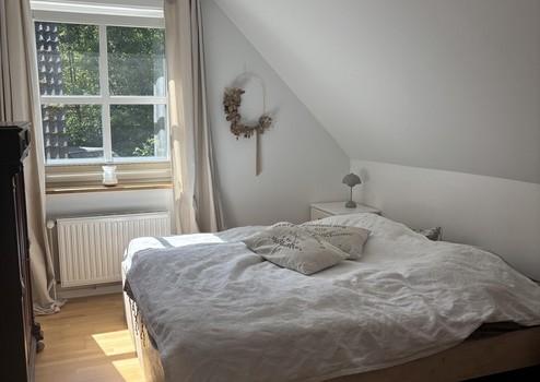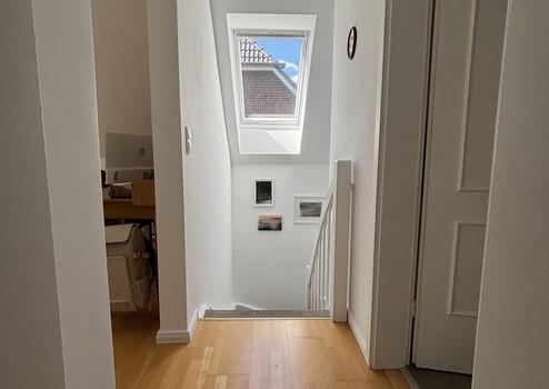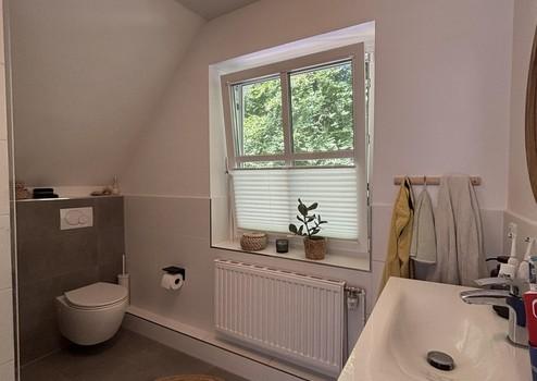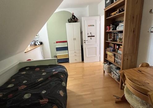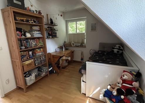 Obergeschoss: Drei Zimmer, davon eines aktuell als Durchgangszimmer genutzt (z. B. Ankleide oder Büro), sowie ein Hauptbad mit Dusche.