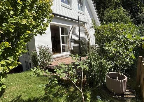 Der Garten umgibt das Haus vollständig und bietet mehrere Sitzecken – je nach Tageszeit und Sonnenstand. Eine ideale Spielfläche für Kinder ist ebenfalls vorhanden: Ein großzügiger Sandkasten mit Spielturm ist bereits angelegt. Hier lässt sich der Familienalltag naturnah und entspannt gestalten.