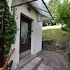 Zugang über zwei Steintreppenstufen, überdacht