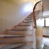 Zugang zum Obergeschoss = Holztreppe mit einseitigem Handlauf