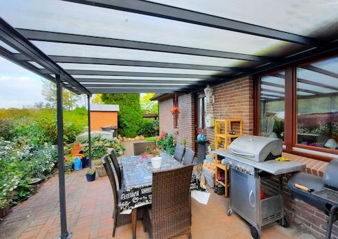 Doppelhaushälfte mit Anbau von ca. 2012, Doppelcarport und 3 Terrassen nah am Haddebyer Noor