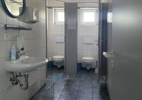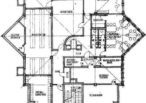 Im Kellergeschoss befinden sich der große Sozialraum mit Einbauküche, die Archiv- und Technikräume, die Registratur, die Umkleiden, der Putzraum und die WCs. Die EDV- und Stromverkabelung erfolgt in Kanälen.