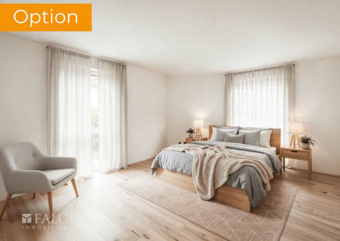 Das Obergeschoss verfügt über das Elternschlafzimmer, zwei Kinderzimmer, ein großes Badezimmer und eine praktische Abstellkammer. Bodentiefe extra breite Fenster sorgen für viel Tageslicht auf dieser Etage.