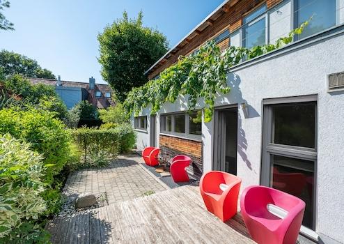 • Das Haus befindet sich auf dem Grundstück in einer Eigentümergemeinschaft mit dem Vorderhaus (WEG). Gesamte Grundstücksgröße beträgt ca. 850 m². Das Einfamilienhaus ist aber ansonsten autark. Zum Haus gehört ein Sondernutzungsrecht von ca. 470 m² und besteht aus: