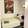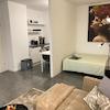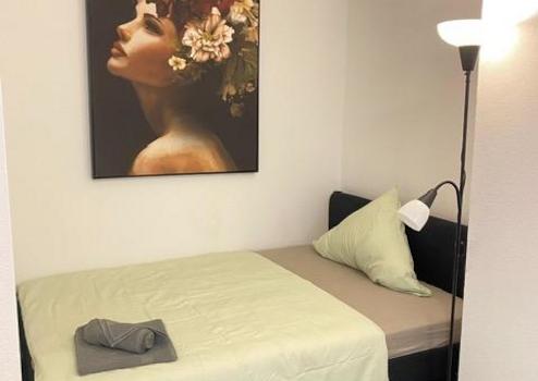 Modern möbliertes Apartment mit grozügigem Wohn/Schlafbereich, möbliert mit Doppelbett, Kleiderschrank und Essbereich. Bad mit Fenster und Badewanne. Separate, voll ausgestatte Küche.