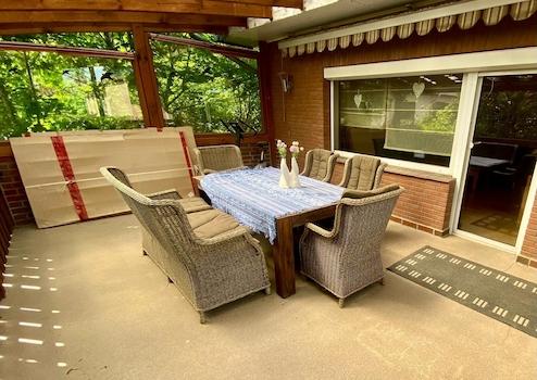 überdachte Terrasse am Wohnzimmer, überdachte Terrasse im Garten mit Gartenhaus, 2x Terrasse ohne Überdachung, Kamin von HWAM, Küche mit Abluft, Kühlschrank Side bei Side mit Eiscrusher, Fußbodenheizung oben in Bad, Küche und Wohnzimmer, Solar-Balkonkraftwerk, Garage mit zusätzlichen Abstellraum, Externer Zugang zum Untergeschoß, die Zufahrt ist asphaltiert, die Stellplätze gepflastert,