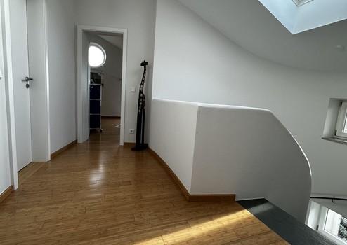 Im Obergeschoss erwartet Sie ein luxuriöses Schlafzimmer mit Relax-Zimmer, Ankleide und einem en Suite Badezimmer mit separatem WC. Ein zusätzlicher Multifunktionsraum bietet vielfältige Nutzungsmöglichkeiten, sei es als Büro oder Kinderzimmer.