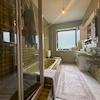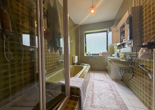 - Badezimmer mit Badewanne und Dusche, Fliesenboden
