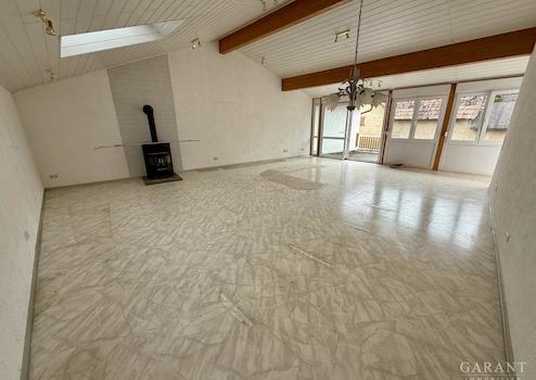 Das im Jahre 1908 erbaute Hauptgebäude bietet Ihnen mit einer Wohnfläche von ca. 190 qm reichlich Platz für die ganze Familie. Sie werden die Größe auf den ersten Blick gar nicht erkennen, denn viel Platz versteckt sich hinter der Straßenfassade: 2002 wurde aus der früheren Dachterrasse über den Garagen ein Wintergarten und ein großzügiges Wohnzimmer mit Kaminofen. Das ist in unseren Augen ein absolutes Highlight. Das noch nicht ausgebaute Dachgeschoss eröffnet Ihnen die Möglichkeit aus dem Wohnhaus ein Generationenhaus zu machen. Die Betonung liegt auf Machen, denn angepackt werden muss. Worüber wir auch schreiben sollten, das ist die Lagerhalle, denn die hat wirklich das Potenzial für eine große Werkstatt, ein platzeinnehmendes Hobby oder für das, was uns gerade nicht durch den Kopf geht, in Ihrem aber schon verankert ist.