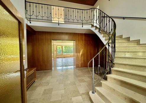Das Herzstück des Hauses ist das rund 53 m² große Wohnzimmer mit fast bodentiefer Fensterfront und Blick in den liebevoll angelegten Garten. Hier genießen Sie zu jeder Jahreszeit eine warme, einladende Atmosphäre. Das offene, großzügige Foyer heißt Sie und Ihre Gäste stilvoll willkommen und unterstreicht den besonderen Charakter dieser Immobilie.