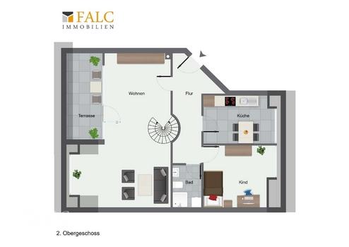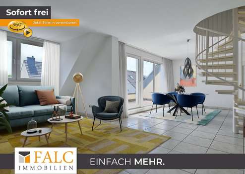 Die erste Ebene besticht durch ein großzügiges, helles Wohnzimmer mit stilvoller Wendeltreppe ins Dachgeschoss und Zugang zum sonnigen Süd-Balkon – ideal, um nach Feierabend zu entspannen. Die separate Küche bietet viel Platz zum Kochen und Verstauen. Ein modernes Duschbad mit Waschmaschinenanschluss sowie ein weiteres Zimmer, das sich perfekt als Arbeits-, Kinder- oder Gästezimmer eignet, runden diese Etage ab.