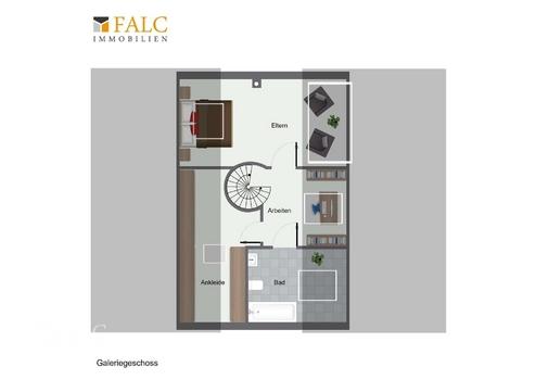 Im Dachgeschoss befindet sich der separate Schlafbereich mit angenehmer Rückzugsmöglichkeit. Das angrenzende Tageslichtbad mit Badewanne lädt zum Entspannen ein. Über die offene Galerie, welche genügend Platz für einen Arbeitsplatz bietet, ist zudem ein großzügiges Ankleidezimmer erreichbar – ein besonderes Plus. Alle Räume sind separat begehbar, was eine angenehme Raumstruktur und Privatsphäre schafft.